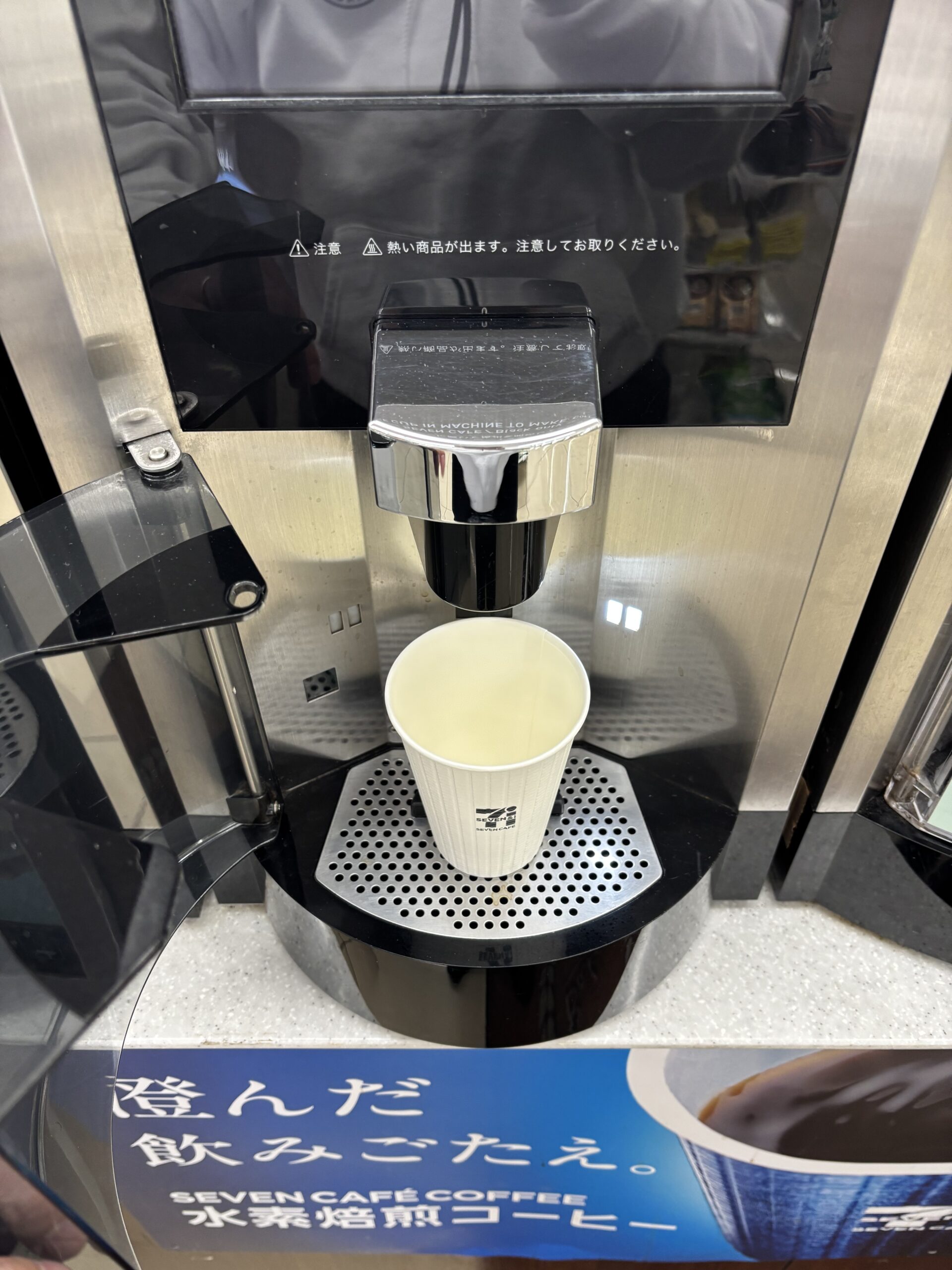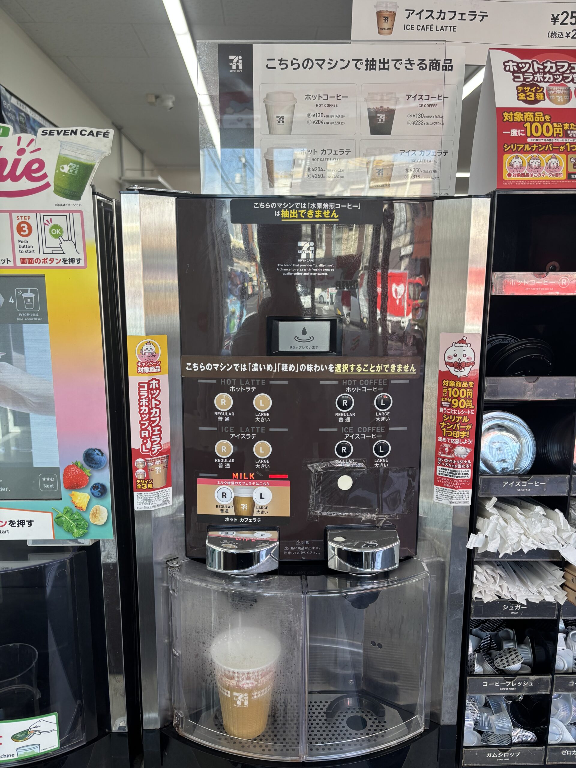 Getting a Seven Café drink is simple, but it requires two main steps: paying for the cup at the register and then brewing the drink yourself at the machine.