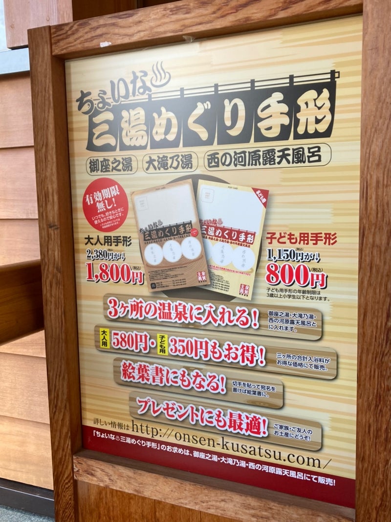 Looking at the “Choina Santou Meguri Tegata” page, it states that it is sold at “each facility (Otaki-no-Yu, Goza-no-Yu, Sai-no-Kawara Rotenburo)!” So, be sure to buy one and enjoy the hot springs at a great price!